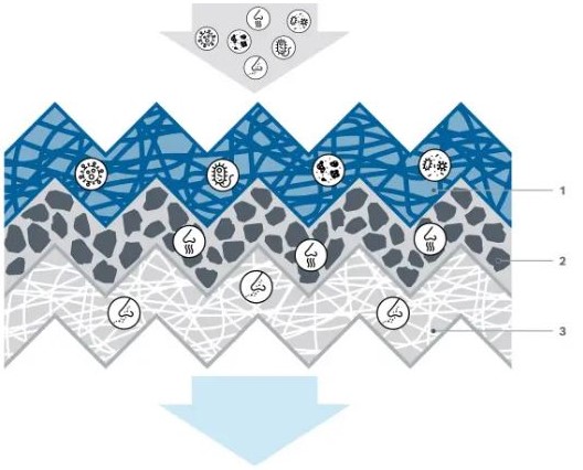 2.Warstwa węgla aktywnego neutralizuje szkodliwe gazy i nieprzyjemne zapachy